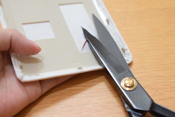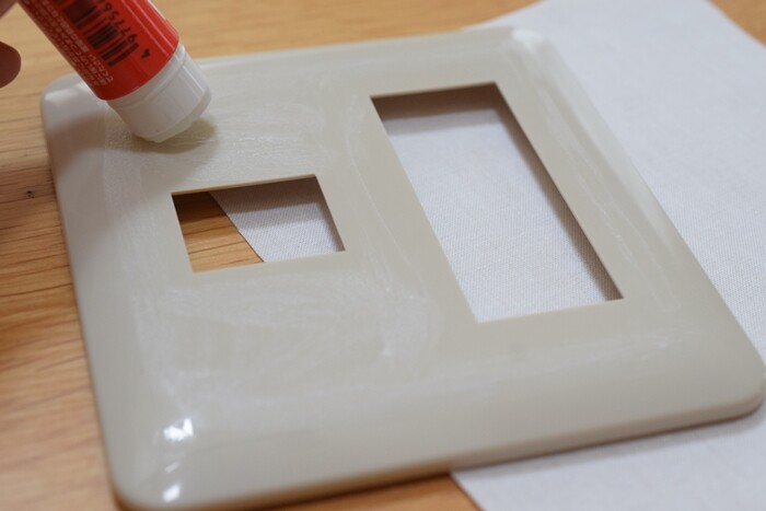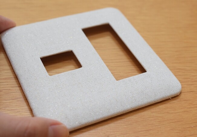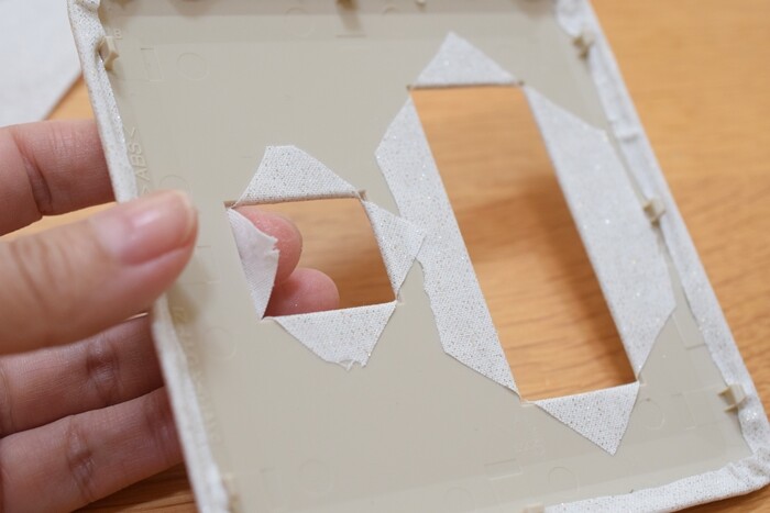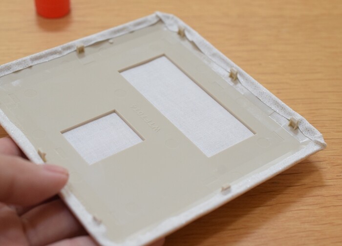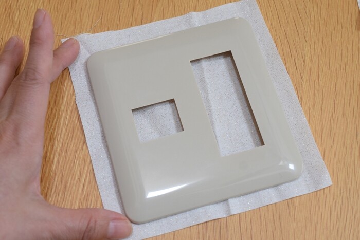 ①スイッチプレートのカバーより周囲1㎝ぐらい大きめに布をカット。