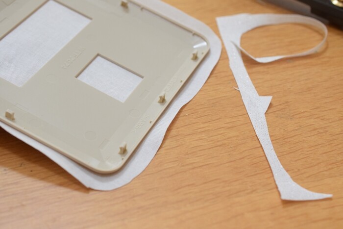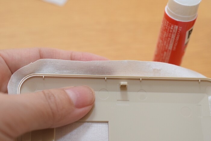⑥ハサミでスイッチの穴の部分の布をカット。