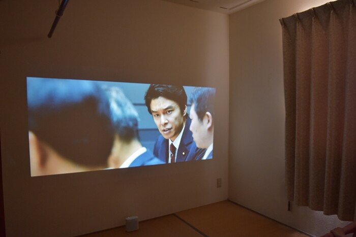 この週末、2階の寝室(6畳の和室)の壁を使って大画面で映画を楽しみました💛