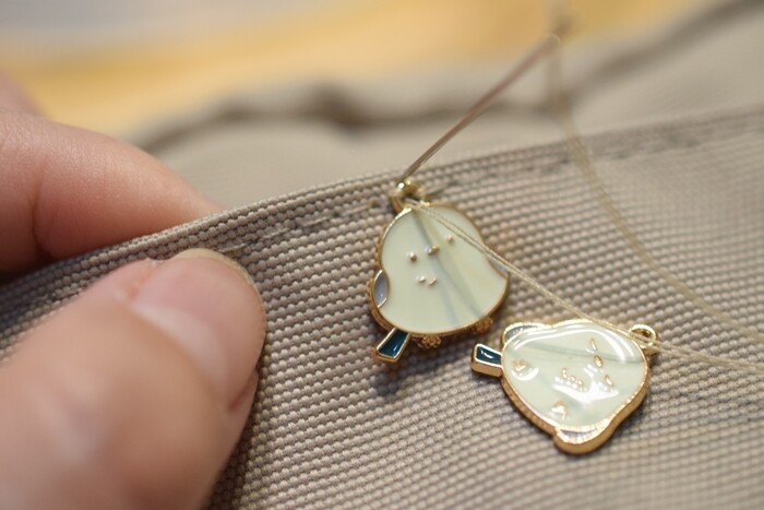 小さいのでボタンみたいに縫い付けちゃうことに。