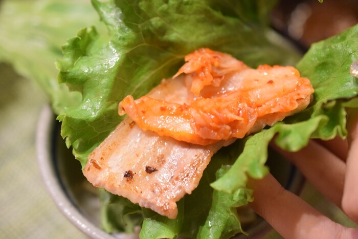 サンチュが高かったので普通のリーフレタスに豚バラ肉とキムチ、コチュジャンなどを挟んで食べたりもしてv( ̄∇ ̄)v美味しかったです。