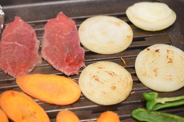 焼肉プレートが付いていたので、それで焼肉にしてみました♬