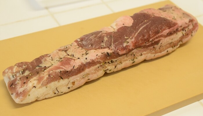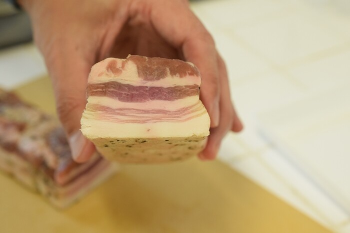 パンチェッタです♬クレイジーソルトのハーブがまぶされています。