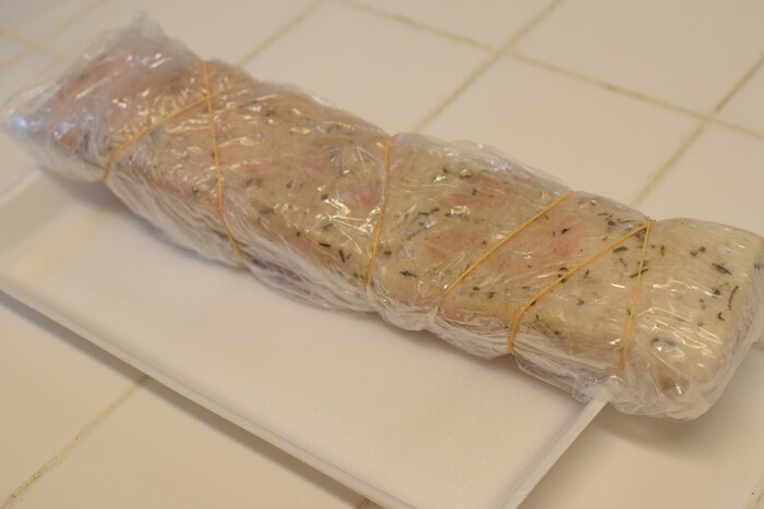 しっかりと包みました。肉から出るドリップを吸収してもらいます。
