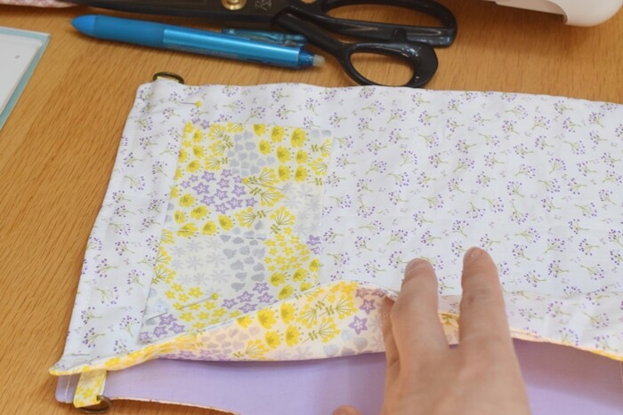 折り紙のように布を挟んで縫うだけ。