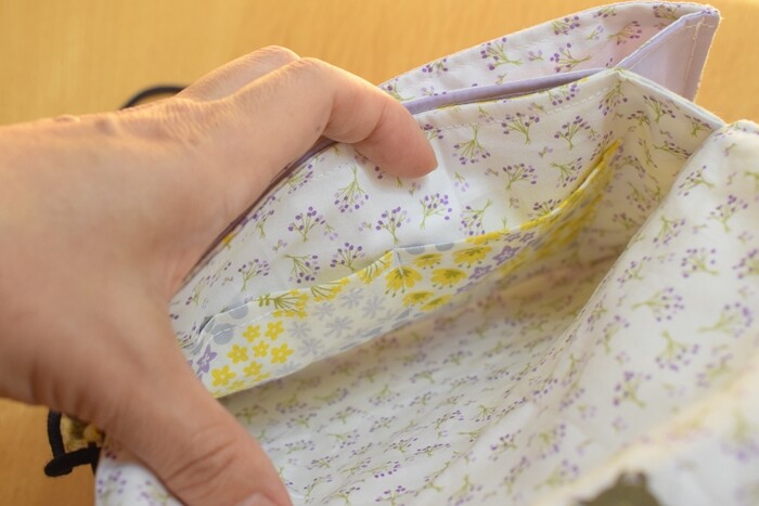 はい、完成です♬ぺたんこポーチなのですが、モノを入れると膨らんで沢山入ります。