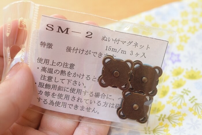 最後に留め具のマグネットボタンを縫い付けました。