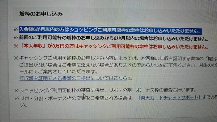 でも調べてみたら、カードを作って最初の6か月は増枠できないんですって…