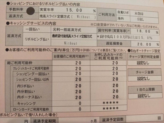 利用限度額 20万/月 となっていて…( ̄▽ ̄;)