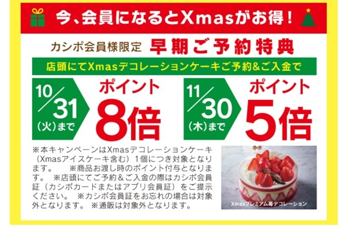 4,000円のケーキなら、320ポイント貰えます✨クリスマスケーキの予約は、10月中に申し込むべき♬