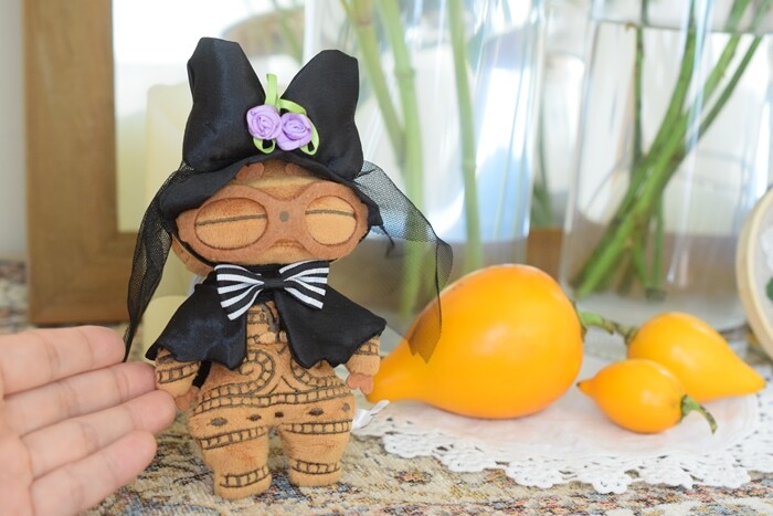 以前から、私の遮光器土偶ちゃん(小さなぬいぐるみ)に100均のお洋服を着せて可愛がっています…(*´∇`*)