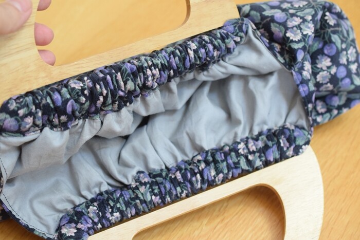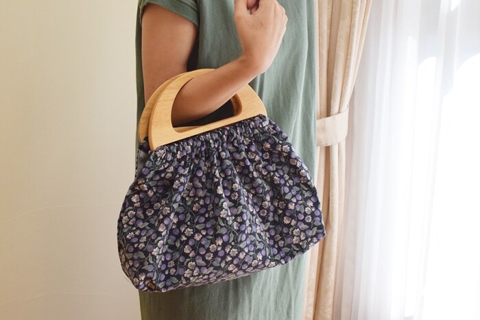 「ウッドハンドル・ギャザーバッグ」のパープル♬