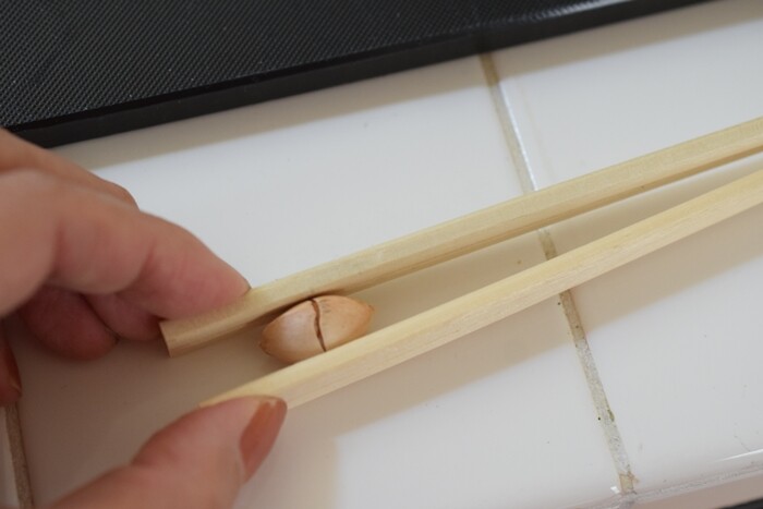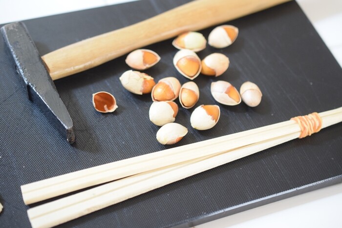もしも割り箸なしで手でこんな小さな銀杏を抑えて叩いていたら、手を叩きそうで危ないです( ̄▽ ̄;)