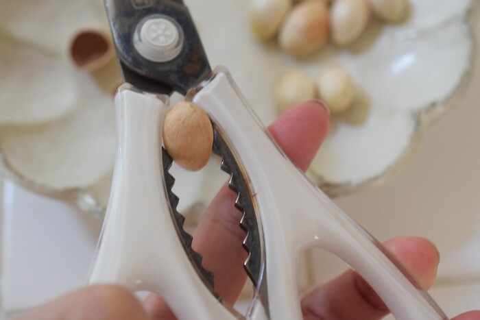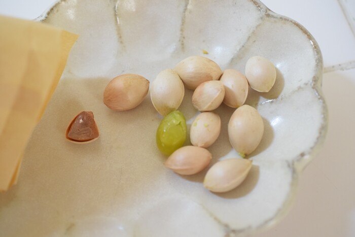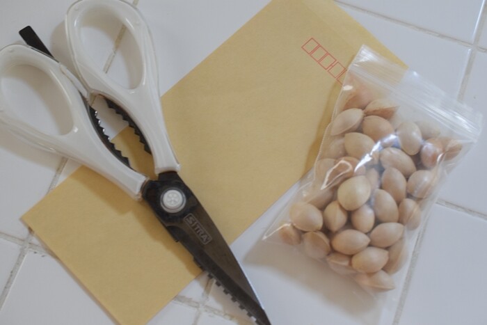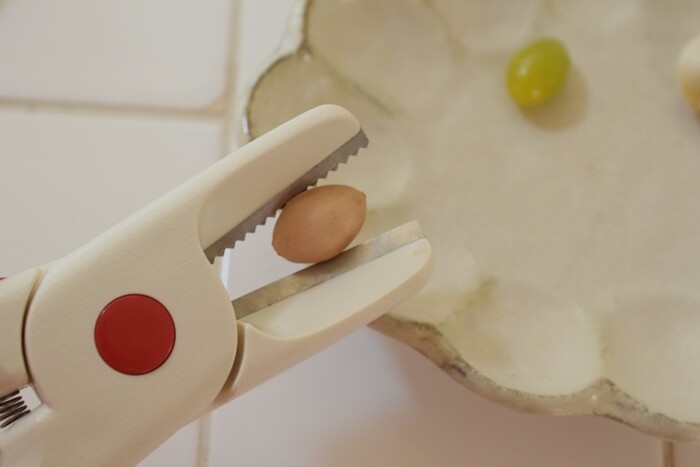 銀杏は封筒チンの後、にんにく潰し器で割っています。力のかかり具合もちょうどよい感じでオススメです。