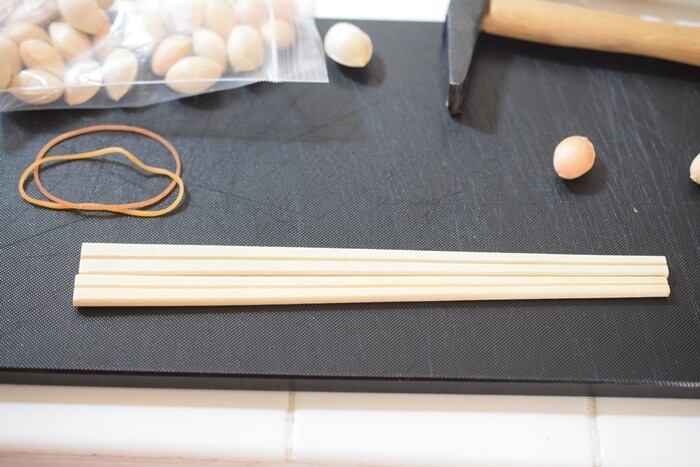 用意するのは割り箸2膳と輪ゴムとトンカチ。