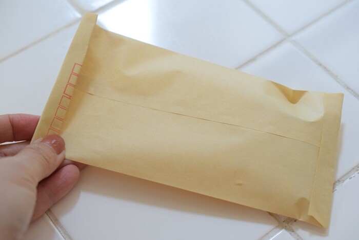 封筒を2つ折りぐらいにしっかり蓋をして、500Wのレンジで30秒加熱。