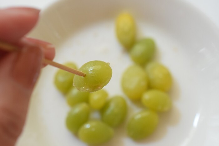 ちょっと水に漬けて薄皮を剥いたら、綺麗に剥けました。