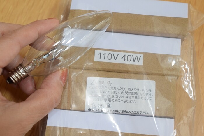 これは40Wの「白熱球」です。一緒にLEDのシャンデリア球を買ったので、最初からそちらを使っています。