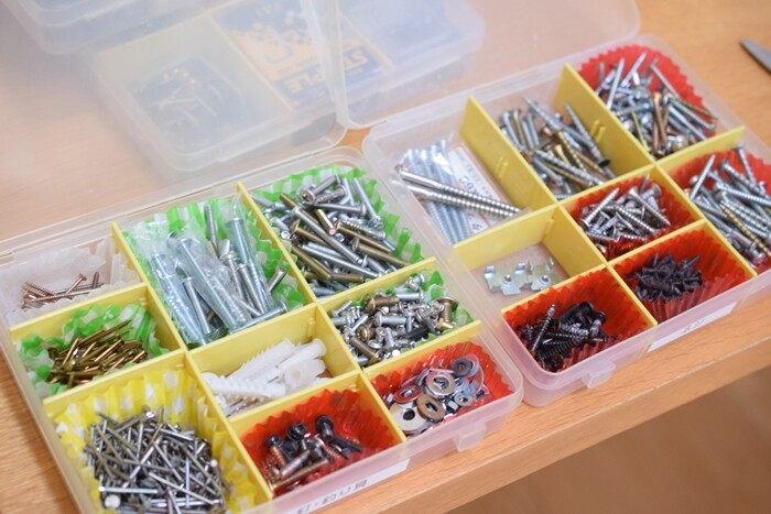 それを面倒だからと袋に入れっぱなしだったのだけれど、袋から出して、ネジはネジのところに、ワッシャーはワッシャーのところにきちんと収納。