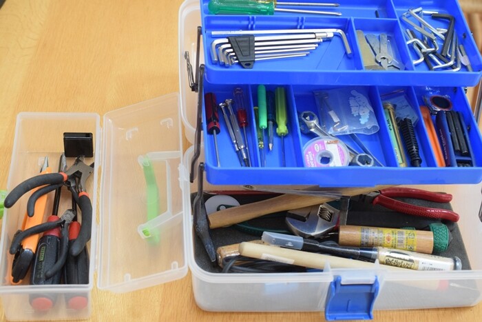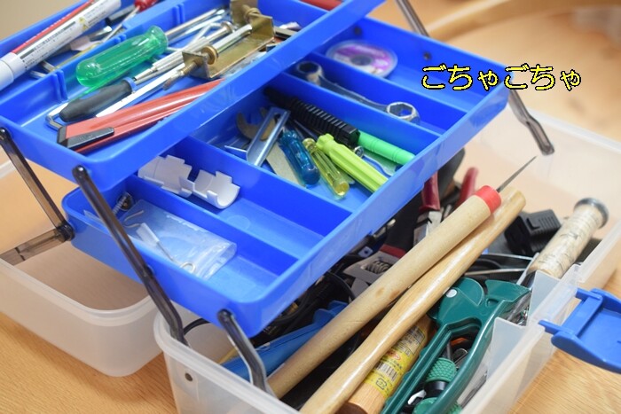 夫の工具箱と言いながらも私もよく使っているので、夫に聞きながら片付けることに。