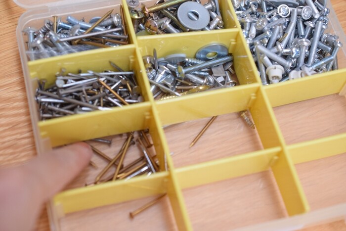 そして、ネジや釘など細かいものが色々入っている白い箱の中も色々整頓したのだけれど。