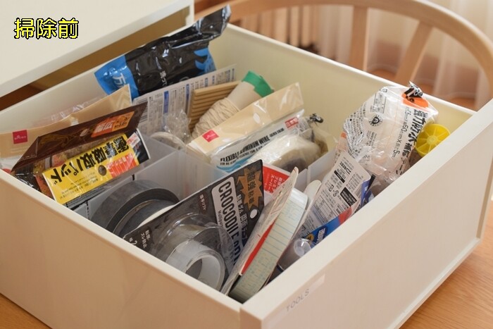 「タコ糸や麻紐」とか「ボンド」など、グループごとにまとめるだけでもスッキリ!