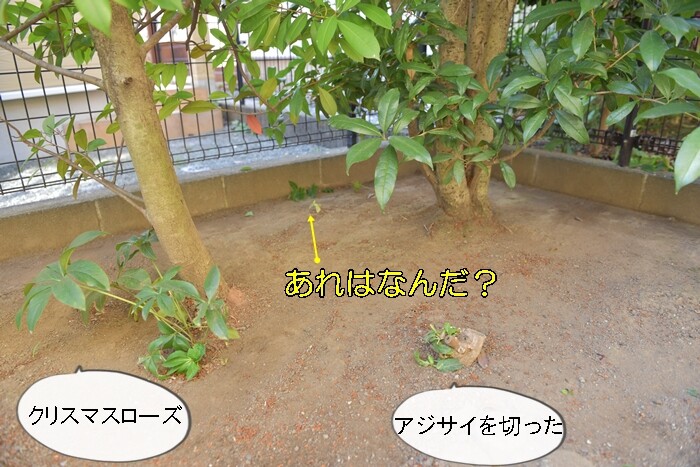 ちょっと待って、キンモクセイの近くにあるあれ何??箒で履いても取れないんですけれど。