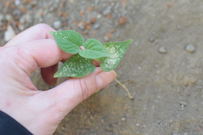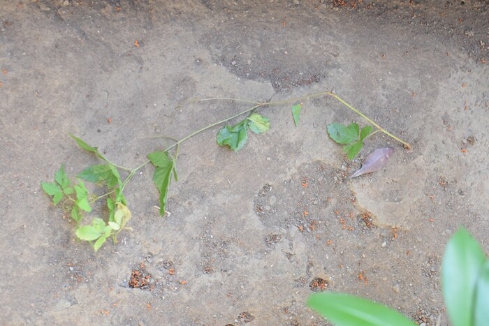 実はもう1つ、ツル性の植物が生えていました。なんだろう、これはまた違う葉っぱな気がする。