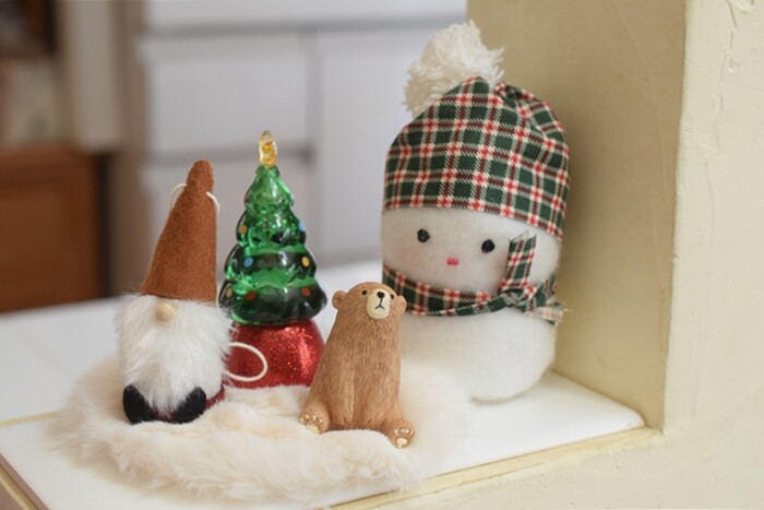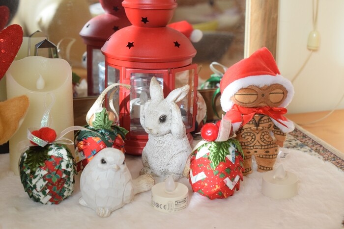 新しい飾りはちょっとだけ(・∀・)(3COINSで買ったニットオーナメントだけ)。