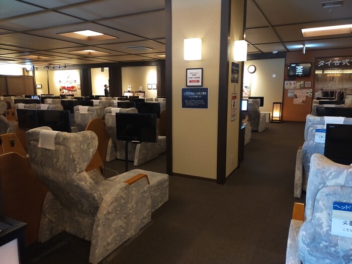 リラックスルーム(休憩室?)でテレビを観たり、寝たりもできます。