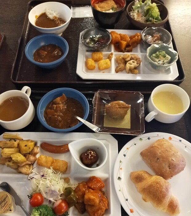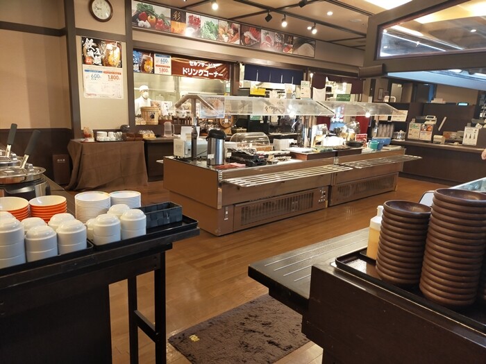 そして、朝食を食べに食事処へ。ビュッフェです。