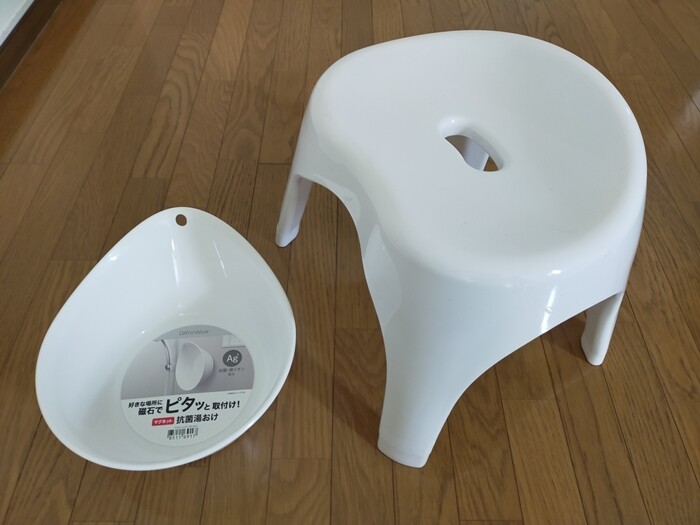 近所のニトリで早速、洗面器と風呂椅子を買ってきました。