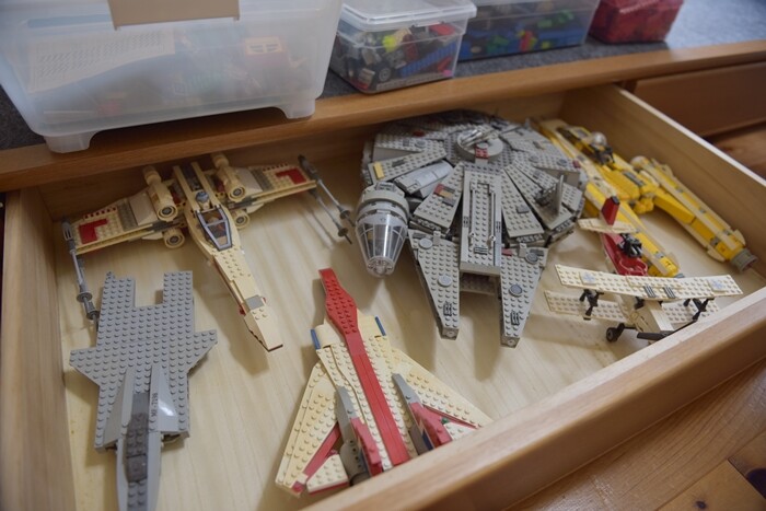完成品のレゴもいっぱいあるのよ~スターウォーズが好きでミレニアム・ファルコンとか。