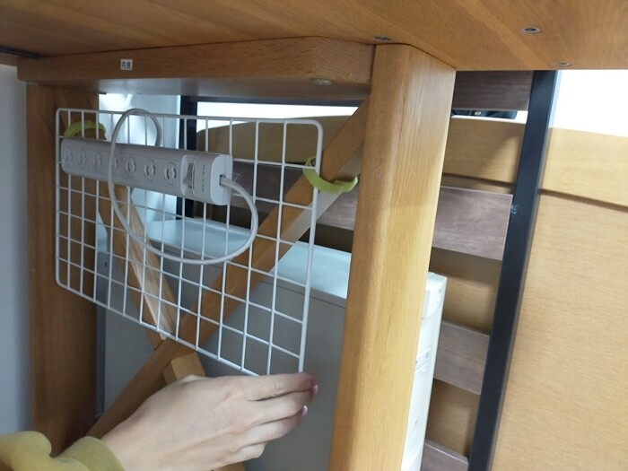 でも賃貸では壁になるべく穴をあけたくないので、机の脚にうまく取り付けていました。