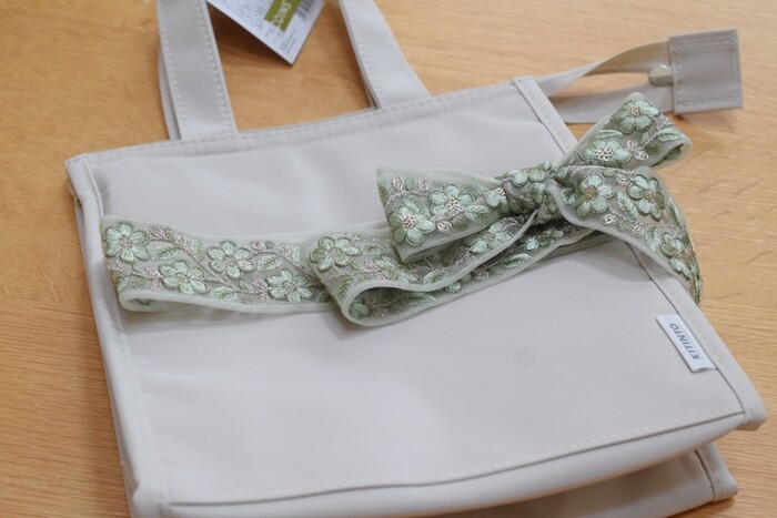 シンプルなバッグなので、ちょっとリボンを付けただけでもオリジナルっぽく可愛くなりますよね。