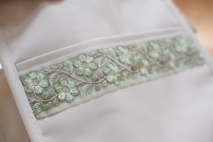 買ったシンプルなバッグやポーチにインド刺繍ブレードを縫い付けるだけでちょっとオリジナルな作品ができるので皆さんもぜひチャレンジしてみてくださいね~♬