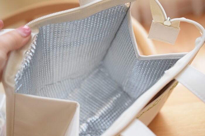 内側がアルミ蒸着シートなので、保温・保冷効果があってこれからの季節に安心です。