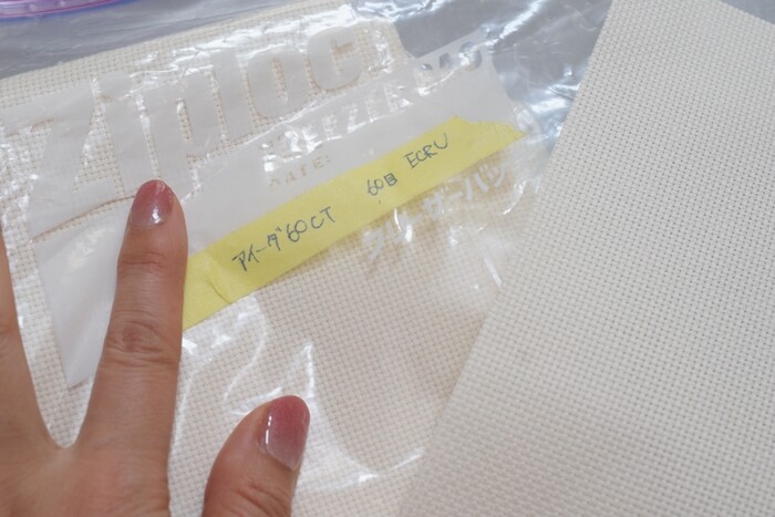 本ではリネン布を使っていたのですが、私は手持ちの「アイーダ16CT」(10㎝に60目)、色はECRUを使いました。
