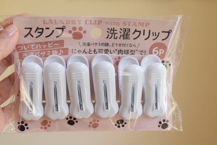 これね、内側が肉球柄になっている洗濯ばさみです(笑)