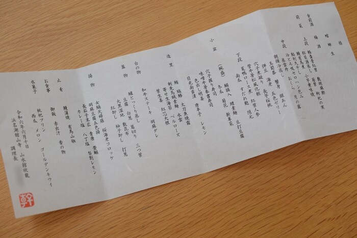 食事の品書き多くてびっくりしました。