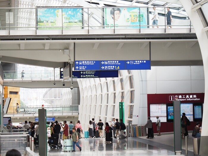 無料シャトルバスが出ているので、これに乗って尖沙咀(チムサアチョイ:一番の繁華街)まで行くことができます。シャトルバスで30分くらいで市の中心まで行けます。