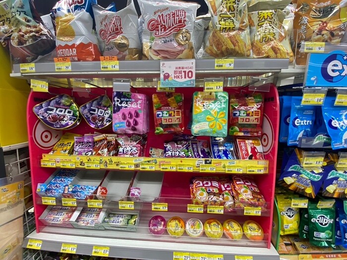 香港のセブンイレブンには日本のお菓子がいっぱい。値段は高いですけれどね。