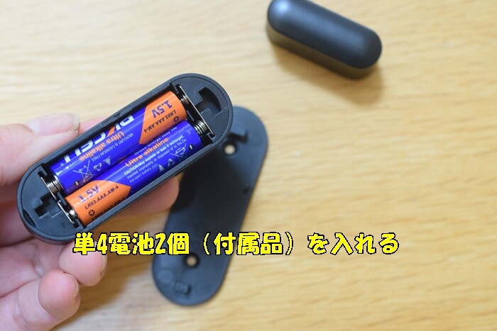 中に付属の単4電池2個を入れて。