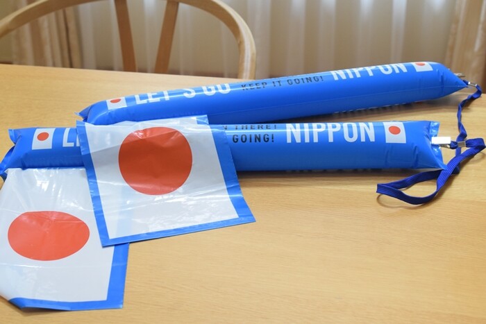 先日、娘と買い物に行ったときに、3Coinsに寄ってこちらのニッポン応援グッズを買いました♬