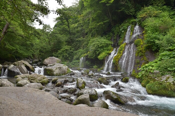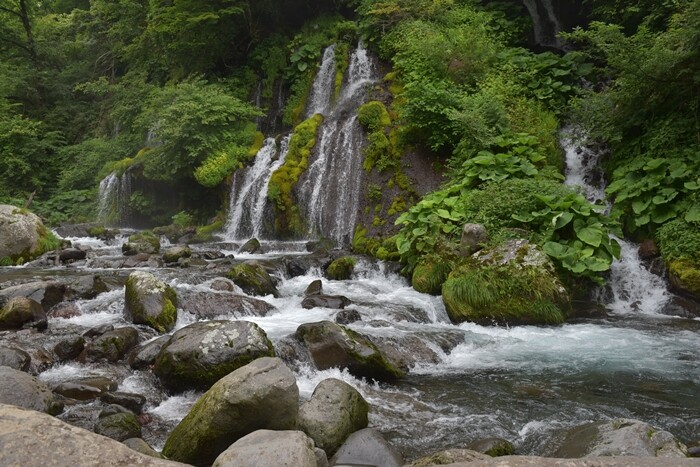 滝の高さはそれほどないけれども、絹糸のような白い滝が何か所もあって、とっても綺麗です。