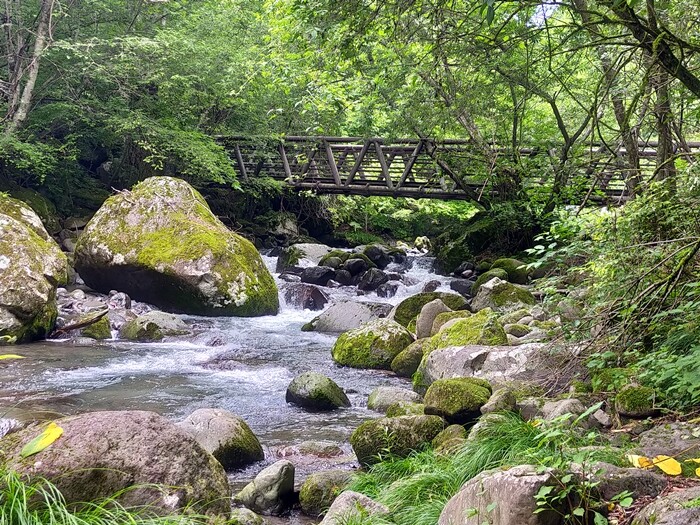 緑もいっぱいでもう涼しい!この橋を渡ってすぐ滝があります。