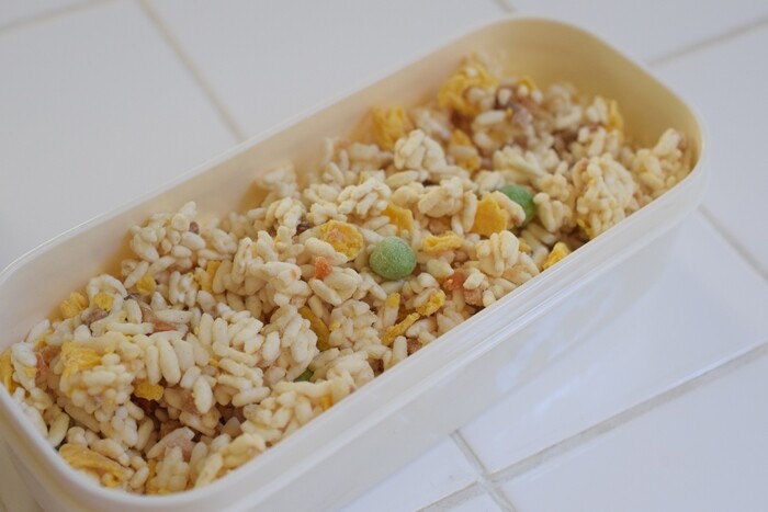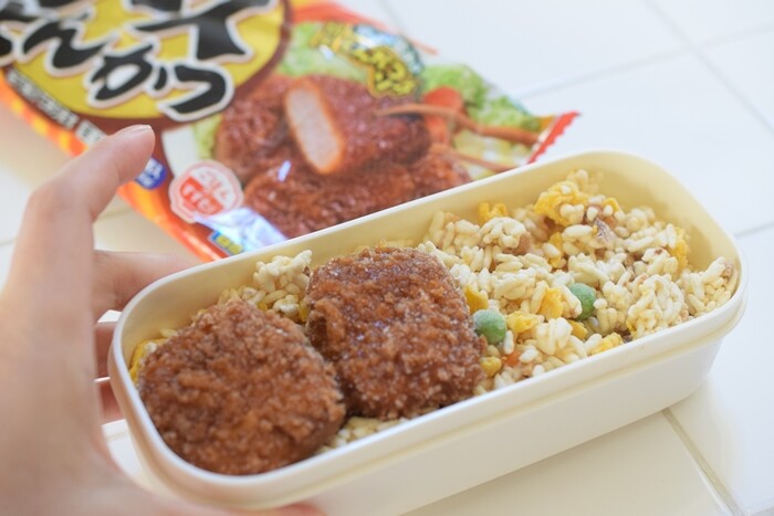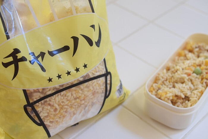 娘がこうやって持って行ったら、「美味しそうでいいね!」って言って周りの同期のお友達も真似して冷凍チャーハンやピラフを持ってくるようになったそうです(笑)