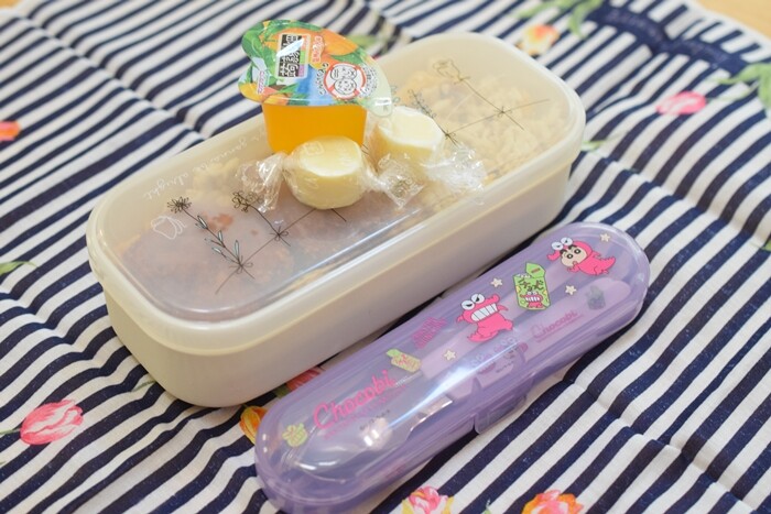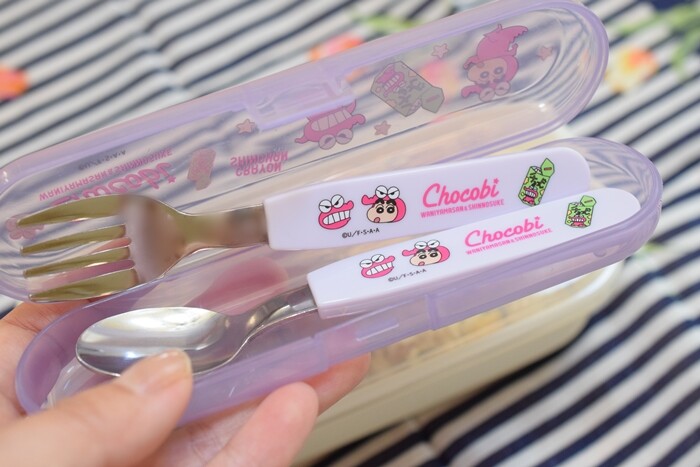 ちなみにこの幼稚園児が使いそうなクレヨンしんちゃんのスプーン+フォーク+ケースは娘が「しんちゃん大好き!」と言って、この間、Seriaで買ったもの(全部で330円)。