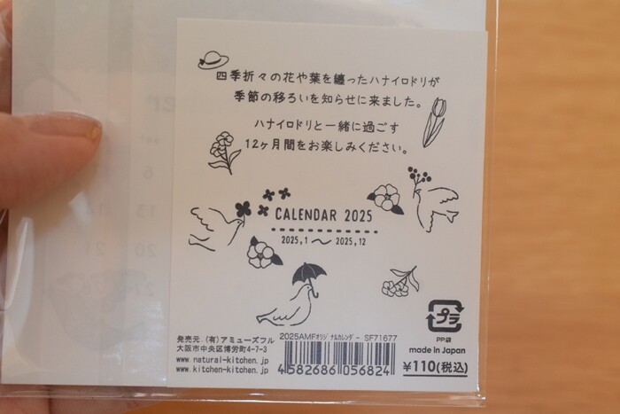 このお値段で、可愛い鳥さんのカレンダーが買えるのは嬉しいです♬