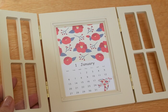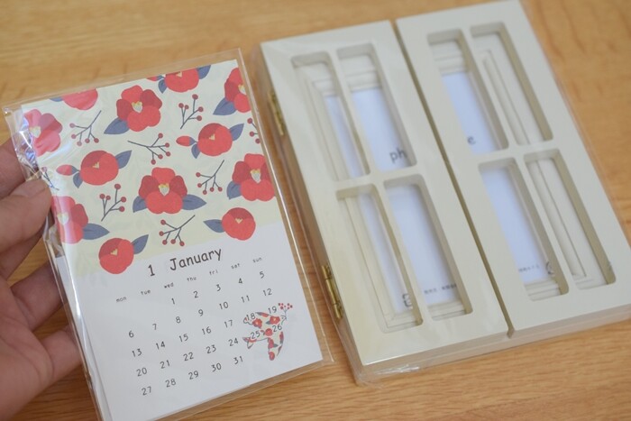 このカレンダーのサイズはW9×H12.5cmで、写真のL版サイズです。写真立てに入ります。